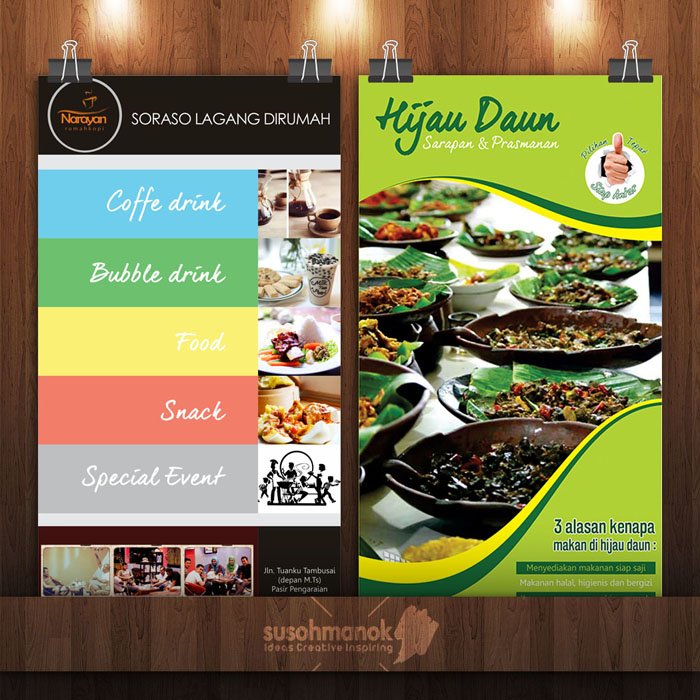 Jasa Desain Brosur di Samarinda Berkualitas – Brosur merupakan salah satu alat promosi yang sampai dengan saat ini masih digemari. Hal itu disebabkan brosur dapat menyajikan informasi yang jauh lebih banyak / lengkap dibandingkan dengan media promosi lainnya, semisal kartu nama atau pun banner. Untuk menghasilkan brosur yang menarik, desain yang bagus menjadi syarat utama. Nah untuk hal ini, Susohmanok selaku usaha yang bergerak dalam bidang jasa desain grafis dan cetak melayani jasa desain brosur di samarinda dengan harga yang begitu terjangkau. Beberapa desain brosur yang pernah kami hasilkan diantara desain brosur kuliner, desain brosur perumahan, desain brosur kesehatan, serta jenis desian brosur lainnya.