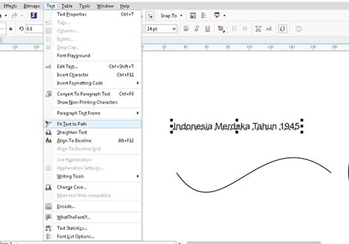 - Ketikkan tulisan yang mau dibuat melengkung. Misal “Indonesia Merdeka Tahun 1945”.