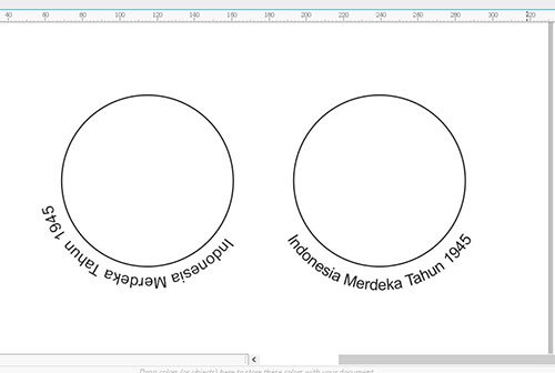 Cukup mudah bukan ? khusus untuk panduan berupa objek, jika tulisan diarahkan ke bagian bawah objek, maka tulisan akan terbalik. Tapi tidak perlu panik, tinggal klik dua kali pada tulisan, kemudian klik tombok Mirror Horizontal dan Mirror Vertikal secara bergantian. Dan bentuk tulisan pun akan menjadi normal kembali.